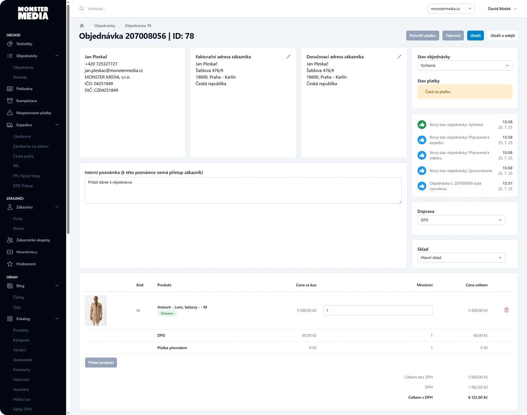Komplexní správa objednávek stavy objednávek, přehled plateb, automatické párování plateb s bankou, historie objednávky, správa dokladů, kompletace objednávek a mnoho dalšího